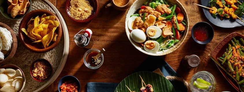 The Dutch-Indonesian rijsttafel (rice table) is an elaborate collection of dishes served as a lavish banquet. It pairs the Dutch ethos of togetherness (gezelligheid) with Indonesian cuisine’s unique and vibrant flavours and spices. This sumptuous, family-style meal features elaborate collection of meat and vegetable dishes that offering a melange of sweet, spicy and savoury flavours to complement a heaping platter of nasi goreng (Indonesian fried rice).