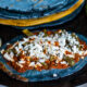 Hünkar Beğendi: “Sultan’s Delight” [Beef or Vegetarian] — luscious roasted eggplant base topped with beef or vegetables in a spiced tomato gravy, served with rice and arugula salad with pickled onions, pomegranate seeds and pomegranate vinaigrette