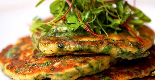 Savoury buckwheat and kale mini pancakes compliment smoky & crispy tofu “duck” tossed with stir fried snow peas and maiitake mushroom, along with a crunchy red cabbage slaw for a colourfully delicious supper.