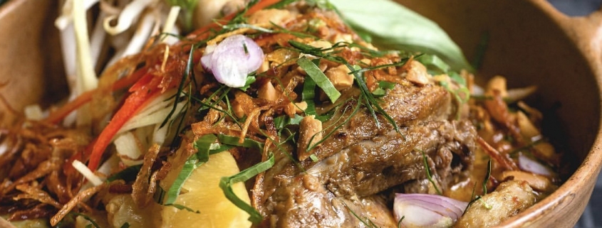 Slow cooked lamb shank with black pepper and caramelized onion. From the Persian meaning “two onions”, this classic dish starts by melting onions and spices to start the sauce, and ends with golden onions as a garnish.