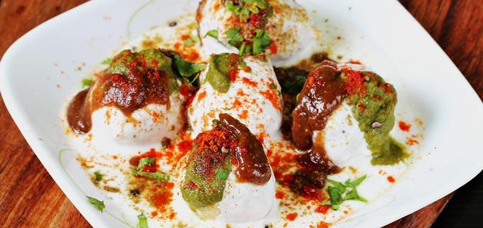 Chaats are a broad category of street food snacks in Northern India that artfully combine crunchy and creamy, salty and sweet, cool and spicy. Dahi Vada is a popular chaat which consists of fried savoury dumplings of urad dal (also known as black gram or black lentil) dunked in creamy yogurt sauce and garnished with spicy and sweet chutneys, spices and fresh coriander