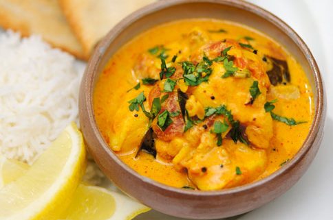 Tender chunks of mahi-mahi, marinated in Indian spices, dusted with chickpea flour and fried, then tossed in a warm coconut and tamarind sauce. Sweet, hot, tangy & creamy! Served with red lentil dal, basmati rice, yogurt raita and warm paratha flatbread. Substitute tofu cubes for a vegan option.
