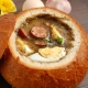 A hearty soup that combines all of the ingredients of a burrito bowl into a warm-hug of an appetizer. Soup contains nutritious red rice, protein-packed navy beans, sweet bell peppers, salsa verde and shredded chicken.