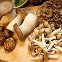 Quattro Mushroom Soup featuring King Oysters, Chanterelles, Shiitake & Cremini Garnished with Coconut Crème Fraiche