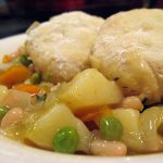 Mushroom Tourtiere accompanied by Market Vegetable Ragout and Grainy Mustard “Demi-Glace”