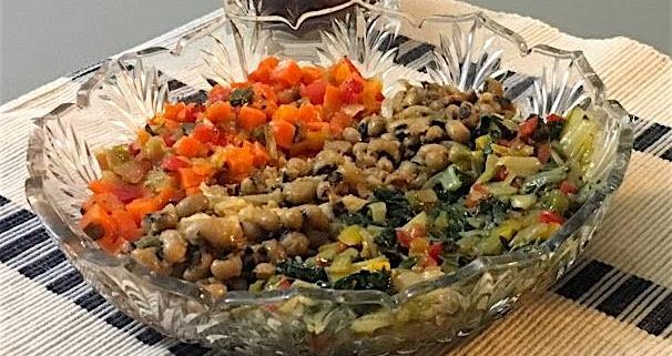 Mbweni: a beautiful composed plate of black eyed peas, colourful peppers, and sautéed onions & leeks that is very popular in both Congo and Angola. #vegan #GF