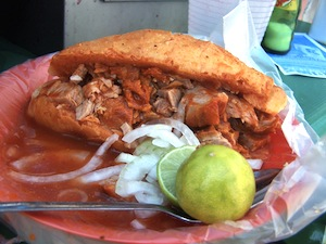 Guadalajara’s classic ‘drowned’ pulled pork sandwich with all the fixin’s