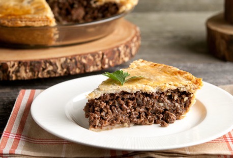 Tourtière – a French Canadian meat pie – is a classic part of the Christmas Eve réveillon and New Year’s Eve meal in Québec. With lots or regional variations including beef, veal, wild game or even fish, the classic Montreal-style features a blend of pork and beef, mirepoix (finely chopped carrots, celery & onion), potatoes, and a traditional spice blend with hints of nutmeg, cloves and sage.