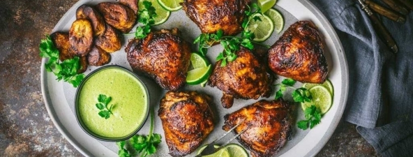 Peruvian roast chicken is simply next-level; if you have never tried it, it is a total game-changer. It is deeply seasoned with a unique mix of spices, herbs and chiles like here: aji panca, aji amarillo and huacatay, before roasting, and then served with a spectacular, vibrant aji verde sauce that makes for an unforgettable flavour combination. Served with crispy roast potatoes.