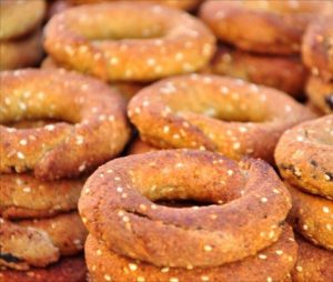 Many kinds of cookies are baked to celebrate Eid, the festivities at the end of Ramadan, each family with a recipe of their own. These delicious cookies are made with semolina and sesame seeds, scented with anise and Mahlab, a spice derived from cherry kernels that adds a marzipan-like almond aroma.