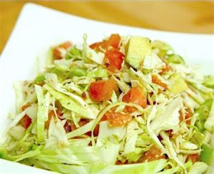 A crisp, refreshing cabbage salad with lemon, sumac and pomegranate seeds