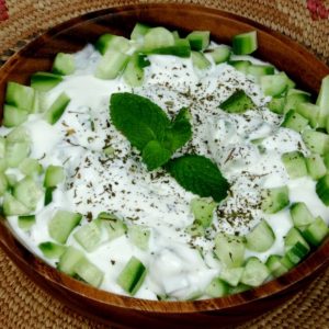 Much like tzatziki, it’s well-known Greek cousin, this combines cool yogurt with garlic and cucumbers, but the addition of mint makes for an especially delightful, cool and refreshing summer salad