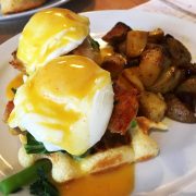 Buttermilk corn waffle – country fried chicken – charred collard greens – 2 poached eggs – cayenne hollandaise
