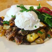 Smoked pork shoulder – skillet potatoes – roasted onions and peppers – 2 eggs any style