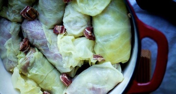 A classic dish across the Balkans, cabbage rolls (Sarme) are stuffed with a mix of ground and smoked meat, rice and spices, and wrapped in tender pickled cabbage leaves before a long braising in a flavourful, tomato and paprika spiked broth. Bosnian stuffed peppers (Filovana Paprika) are thin, pale green peppers stuffed with a rich mix of potatoes, cream, cheese and eggs, then baked until tender and golden.