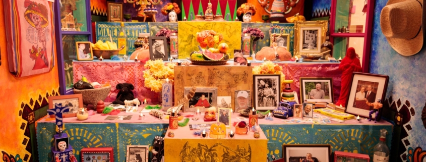 According to ancient traditions in Mexico, at the beginning of November the barrier between the living and the dead worlds become blurry, and the souls of the dead have the chance to come back, and be celebrated by their families and friends. Ritual foods are prepared and offered to the souls of the dead in colourful altars, providing an opportunity for families to bond around the shared memories of those that are no longer with us.