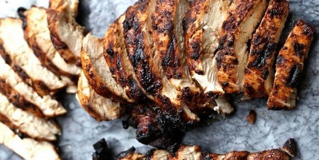 One of the signature flavours of Jamaica, Jasmin blends her own jerk marinade with fragrant thyme, fruity and hot scotch bonnet peppers, and the sweetness of agave nectar. The chicken breasts are marinated for 24 hours to infuse them with these sweet and spicy flavours. Served with a Mexican-inspired red quinoa salad with creamy avocado, spanish onions, black olives and tangy lime dressing, and a fresh salsa of local tomatoes, sweet onions, garlic and cilantro.