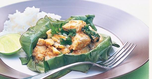 Fresh cod in a sweet, creamy coconut & tamarind-based curry, cooked “en papillote” in individual banana leaf packets. Served with delicate basmati rice, spinach and chickpea saag paneer and a trio of Greg’s spectacular homemade chutneyrs: mango, plum, and green tomato & eggplant.