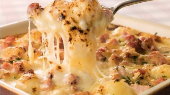 This iconic dish of the Savoie country is made with Reblochon cheese. This traditional tartiflette features a bed of potatoes, onions and lardons topped with Reblochon cheese, melted and grilled in the oven. Not a light dish but the harsh Alpine winter calls for something to warm your bones!