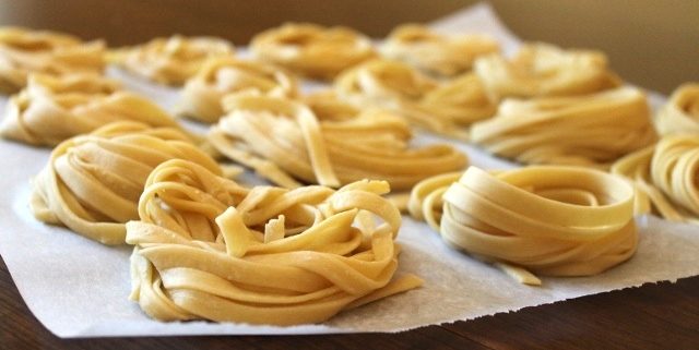 – Cutting, shaping and cooking fresh pasta.
