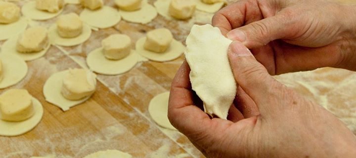 You’ll start the class with a warm borscht broth, then roll up your sleeves (literally) and dive into learning how to make several pierogi with fillings including: farmers cheese with potato, savoury sauerkraut with mushroom and onion, delicious dessert pierogi with sweet cherry filling. One half of the class will be working with gluten-free dough while the other with standard dough.